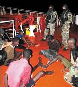 馬來(lái)西亞海軍21日抓獲7名索馬里海盜。