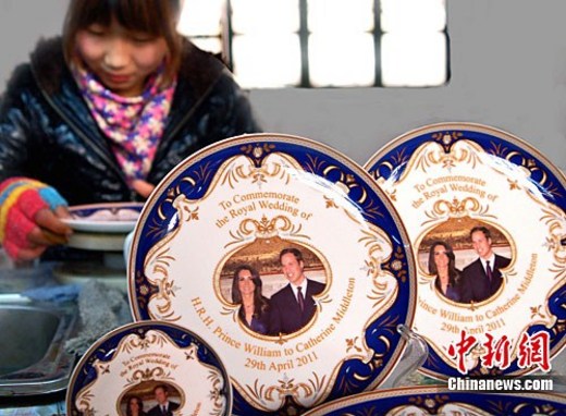 1月10日,曾為瑞典王儲維多利亞公主制作大婚“國禮”系列瓷的河北唐山商務部門透露,經(jīng)英皇室指定,由唐山瓷企生產(chǎn)的7萬余件婚禮禮品瓷將作為威廉王子婚禮的“國禮。圖為貼花女工正將花紙貼在骨質瓷盤上。中新社記者 白云水 攝