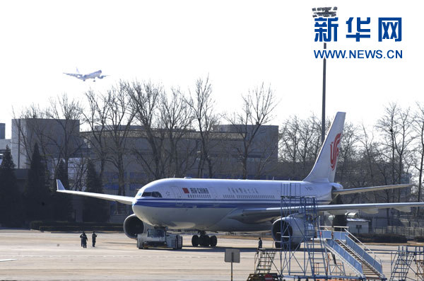 1月31日11時(shí)30分,國(guó)航派出赴埃及首都開羅的空客A330客機(jī)準(zhǔn)備出發(fā)。新華社發(fā)(馬儒壯 攝)