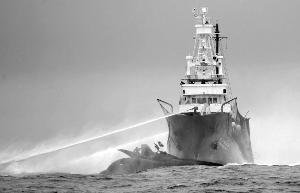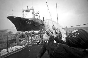 9日,日本捕鯨船與環保組織“海洋守望者”成員在海上“激戰”。由于“海洋守望者”的奮力阻攔,日決定暫停捕鯨。
