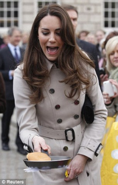 在廚房里面拋薄餅可能是常事,但是對第三次正式露面的準王妃凱特·米德爾頓(Kate Middleton)來說,站在大馬路中間拋薄餅,手抖一下則是可以體諒的。據英國《每日郵報》報道,英國威廉王子和未婚妻凱特突然到訪北愛首府貝爾法斯特(Belfast),并在星期二(8日)“薄餅日”的慈善募捐活動上秀了一把廚藝:翻拋薄餅。