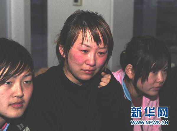 3月14日,來自山東的孫燕芳(中)在日本宮城縣南三陸町一避難所內。當日,在地震重災區日本宮城縣南三陸町,記者見到了21名來自中國遼寧和山東的工廠研修生,她們原定于15日工作到期回國。地震后,她們就和家人失去聯系,希望家人能知道她們一切安全,希望能早日回國。 新華社記者 季春鵬 攝