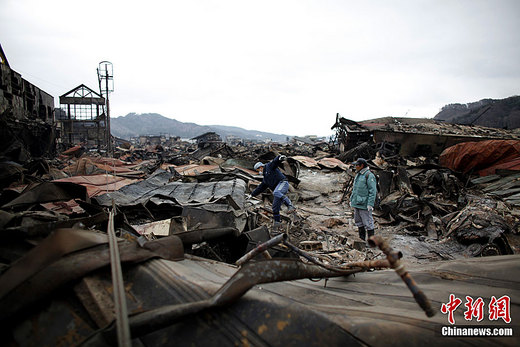 3月15日,日本9.0級大地震和海嘯過去后。日本巖手縣的一個小鎮(zhèn)變成了一片瓦礫,人們在這片地區(qū)搜索被困人員和能夠使用的物品。