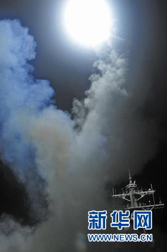 這張美國海軍提供的照片顯示,3月19日,美國海軍“巴里”號導彈驅逐艦向利比亞發射“戰斧”巡航導彈。美軍參謀部主任威廉·戈特尼19日說,部署在地中海的美軍和英軍軍艦與潛艇當天向利比亞發射了上百枚“戰斧”巡航導彈,襲擊了利比亞的20多處防空設施。新華社/美聯