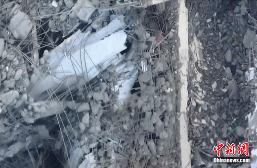3月16日,由日本自衛隊員在直升機上拍攝的照片顯示福島第一核電站反應堆外墻已成碎片。