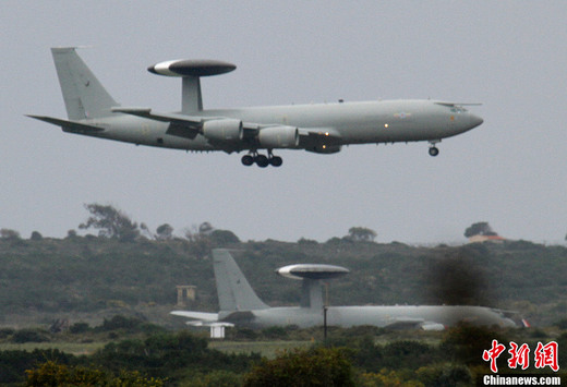 3月20日,在位于塞浦路斯的英國阿克羅蒂里空軍基地,一架英國皇家空軍飛機(jī)準(zhǔn)備著陸,另一架飛機(jī)停在后方。美國國防部聯(lián)合參謀部主任威廉·格特尼19日在五角大樓新聞發(fā)布會上透露,在第一波襲擊中,美國和英國的軍艦和潛艇向利比亞海岸的20多個(gè)防空目標(biāo)發(fā)射了112枚戰(zhàn)斧式巡航導(dǎo)彈。