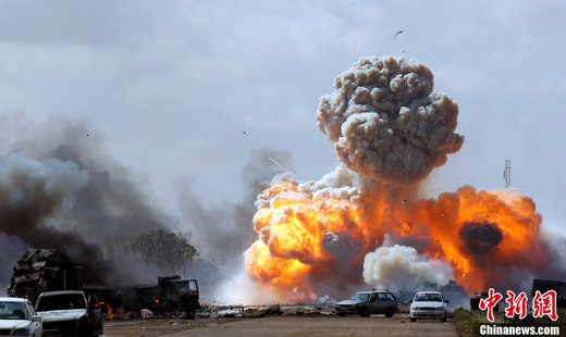 3月20日,班加西附近,忠于卡扎菲的武裝力量裝備遭遇聯軍襲擊。