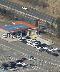 長者原服務區(位于宮城縣大崎市)的加油站內,等待加油的汽車排成了1公里以上的長隊。大崎市的山下智美(19歲)高興地表示,“聽說服務區能優先供應汽油,所以一直期待早日開放。”