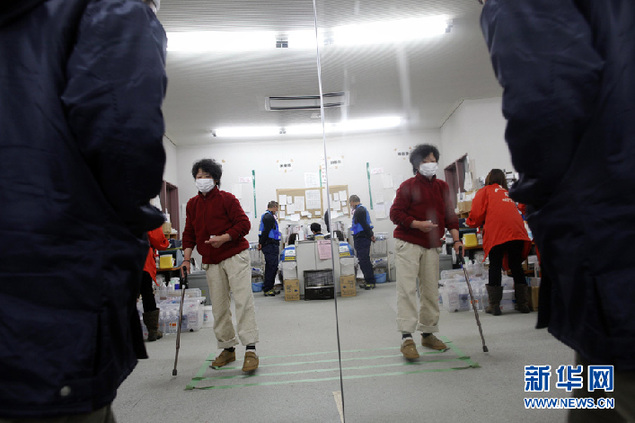 3月30日,在日本地震重災區宮城縣南三陸町,一名在海嘯中受傷的女子到一個臨時診所治傷。 新華社/路透
