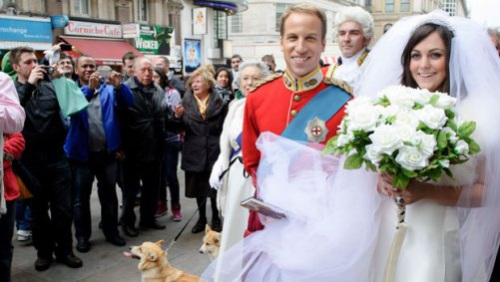 愚人節(jié)倫敦上演“皇室婚禮”,假威廉、凱特引圍觀