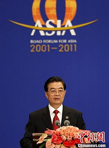 4月15日上午,中國(guó)國(guó)家主席胡錦濤出席博鰲亞洲論壇2011年年會(huì)并發(fā)表主旨演講。中新社發(fā) 任晨鳴 攝