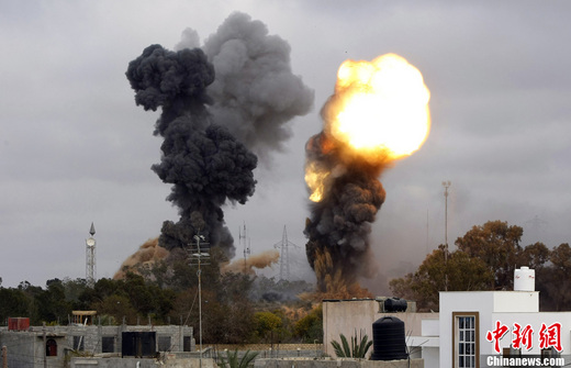3月29日,利比亞首都的黎波里,利比亞領導人卡扎菲住所附近發生多起爆炸。
