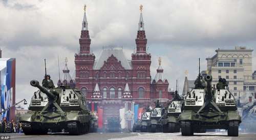 9日,莫斯科舉行了紀念衛國戰爭勝利66周年閱兵式。2萬名士兵穿過克林姆林宮前廣場,接受檢閱的載有百余件機械化武器裝備隊伍——包括裝甲車和白楊-M(Topol-M)洲際彈道導彈。另外,直升機中隊懸吊著旗幟掠過紅場,但戰斗機未在閱兵式中現身。