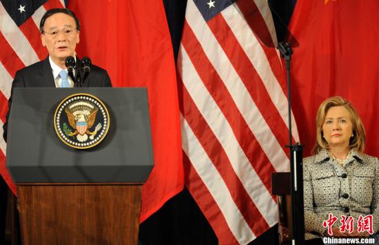 當地時間5月9日上午,第三輪中美戰略與經濟對話在華盛頓開幕。中國副總理王岐山、國務委員戴秉國、美國副總統拜登、國務卿克林頓、財長蓋特納等出席開幕式。圖為王岐山致辭。中新社發 張煒 攝