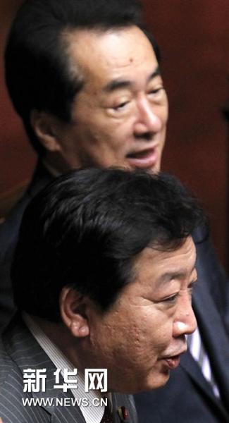 8月30日,野田佳彥(下)與菅直人參加在東京舉行的眾議院全體大會。日本執政的民主黨新代表(黨首)野田佳彥30日下午在國會眾議院首相指名選舉中當選新一屆首相。 新華社/路透