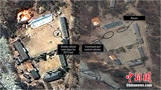 報道稱,該衛星圖像是美國商業衛星企業于北京時間6日上午9點10分、即核試驗40分鐘后拍攝的。研究所表示,由于試驗場周圍都被雪覆蓋,只有來往西側坑道的道路上沒有積雪,由此可以分析,這條道路上有頻繁的車輛往來。另外,在管理所附近還看到了4輛卡車和一些工作人員。