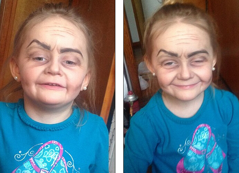 據英國《每日郵報》1月7日報道,美國俄亥俄州3歲小姑娘羅伊(Roey)近日被阿姨化了一個“老人妝”,瞬間變成了一位80歲的老奶奶,照片被放到網上后點贊人數超過4萬次。