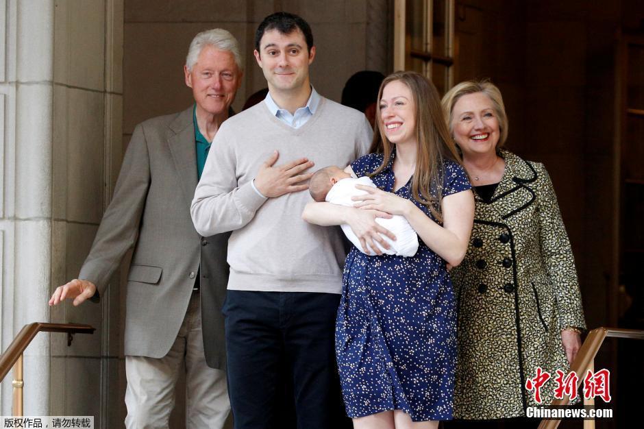 當(dāng)?shù)貢r間2016年6月20日消息,美國紐約,美國前總統(tǒng)克林頓與現(xiàn)任民主黨總統(tǒng)參選人希拉里夫妻倆18日喜迎第2個外孫,獨生女切爾西在推特宣布兒子誕生喜悅,并將孩子命名為“艾丹·克林頓·梅茲文斯基(Aidan Clinton Mezvinsky)”。圖為6月20日切爾西抱愛子走出醫(yī)院。