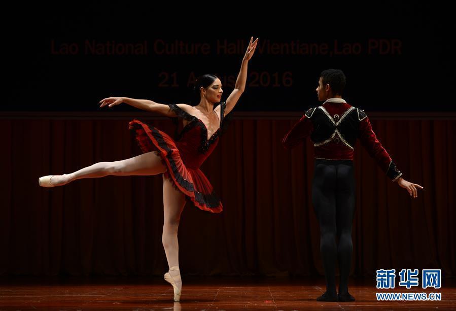 8月21日,在老撾首都萬象,古巴舞蹈家表演芭蕾舞。當日,老撾首都萬象舉行芭蕾舞演出,慶祝古巴革命領袖菲德爾·卡斯特羅90歲生日。來自古巴的舞蹈家為現場近千名觀眾帶來了一場精彩的芭蕾舞表演。新華社發 劉艾倫 攝 圖片來源:新華網