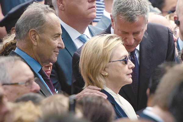 圖為希拉里11日在紐約出席“9·11”紀念活動。