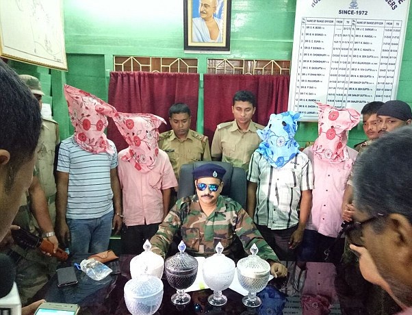 印度警方表示,他們先前收到消息,說(shuō)有一批蛇的毒液正在從孟加拉國(guó)走私運(yùn)往印度進(jìn)行販賣。于是他們扮作顧客,與走私成員聯(lián)系,表示想要購(gòu)買這批貨物,從而引出了4名國(guó)際走私組織的成員,將他們一舉逮捕,并截獲了5罐蛇的毒液,這些罐子都是防彈的。除此以外,他們還繳獲了一批彈藥以及一把手槍。