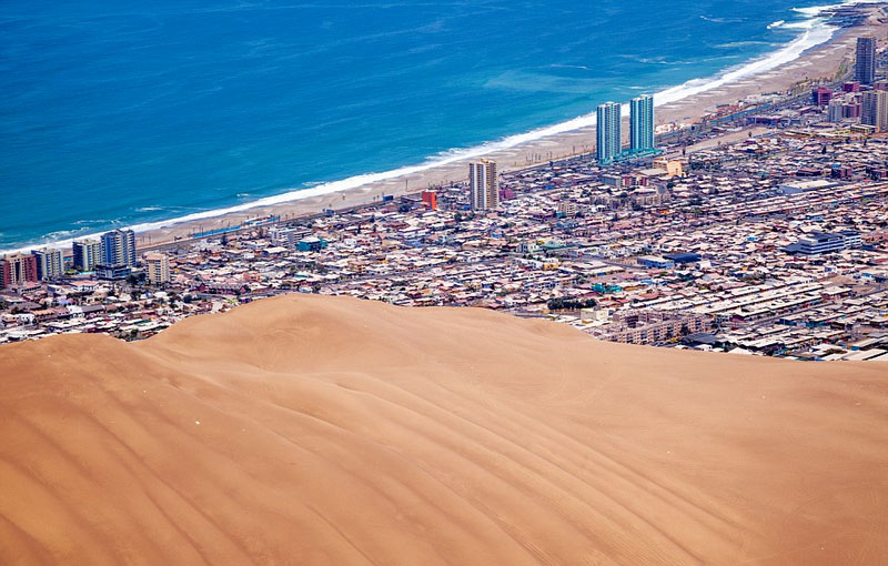 近日,一段由滑翔者上傳的智利沙丘城市伊基克的俯瞰視頻引起人們的廣泛關注。在巨型沙丘的映襯下,伊基克立即變得“矮小”,十分有趣。