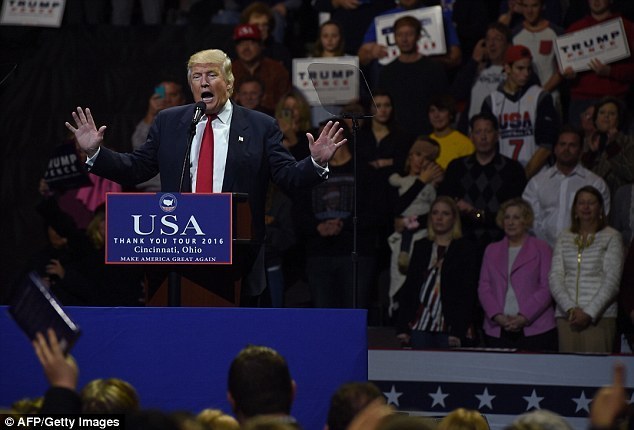 當選總統(tǒng)特朗普12月1日首次在俄亥俄州辛辛那提市舉行選后集會(圖片來源:英媒)