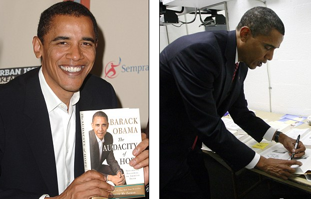 正在簽名售書的奧巴馬(資料照片)