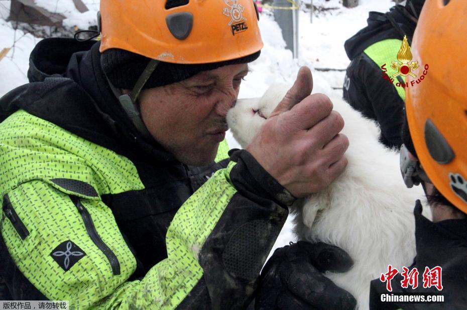 當(dāng)?shù)貢r間1月23日,意大利救援人員在被雪掩埋的酒店附近找到三只被埋的狗寶寶。三個呆萌小家伙的獲救讓工作人員喜出望外,熱情地對它們又抱又親。意大利中部的一處滑雪度假酒店當(dāng)?shù)貢r間1月18日遭到雪崩掩埋,造成賓館內(nèi)超30人失蹤。