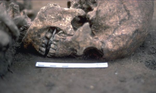 英國考古學家發(fā)現(xiàn)一具令人驚駭?shù)哪行允牵纳囝^被人割下后再塞進石頭。(英國《衛(wèi)報》)