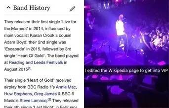 近日,英國一個名叫亞當·博伊德的少年居然通過修改維基百科頁面,冒充歌手家屬獲得了演唱會的貴賓席位。亞當將自己這一經歷記錄在社交網站上,引發廣泛關注。