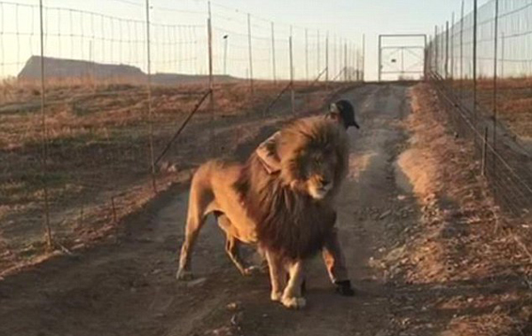 據英國《每日郵報》2月22日報道,在南非的Glen Garriff環境保護公園,一頭傲嬌的雄獅每天都會站在路中間拒絕挪動,除非它最喜歡的人——獅子經理邁克撫摸并擁抱它后,才愿意前行。
