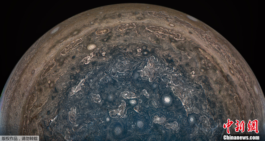 近日,NASA公布了一張木星南極的圖像,這張圖像由“朱諾”號木星探測器拍攝。“朱諾”在飛越木星南極時,于云頂上方101000千米處記錄了這幅令人驚嘆的畫面。