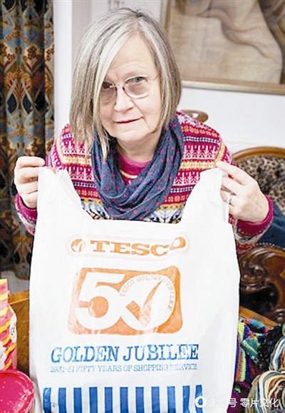這只塑料袋是英國(guó)大型連鎖超市“樂購(gòu)”為慶祝開業(yè)50周年于1981年制作的,上面印有50周年店慶標(biāo)志。蘇·奧多德當(dāng)年在伯明翰一家樂購(gòu)店買東西時(shí)得到這只袋子。36年來,她家一直用這只塑料袋裝毛線。近40年來,奧多德一家搬了5次家,從伯明翰住到什羅普郡,而這只塑料袋也一直伴隨著她們。