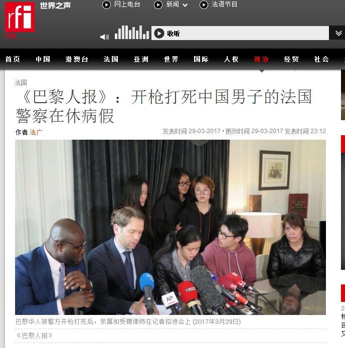 29日,死者親屬聘請(qǐng)的3名律師和死者的全家(妻子和一子四女)在地處巴黎香榭麗舍大道后邊的馬爾博夫(Marbeuf)街律師事務(wù)所召開記者會(huì)。記者會(huì)引來眾多中法媒體。法新社報(bào)道稱,死者親屬在記者會(huì)上呼吁巴黎同胞保持冷靜。