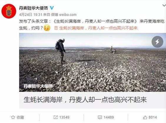 網友高漲的熱情讓這篇文章迅速走紅,截至發稿時,轉發數量已經過萬。但同時,也有網友發出了質疑的聲音:發表這篇文章的目的,是不是為了營銷呢?為此,記者前往丹麥駐華使館進行了采訪。使館媒體公共外交文化參贊表示,發表文章的初衷是因為恰巧丹麥國內最近正在熱議太平洋生蠔外來物種入侵的問題。他們并沒有想到文章會引起如此熱烈的反響。不過丹麥大使館表示他們很喜歡這個驚喜,因為推介自己國家本來就是各駐外使館的重要工作。