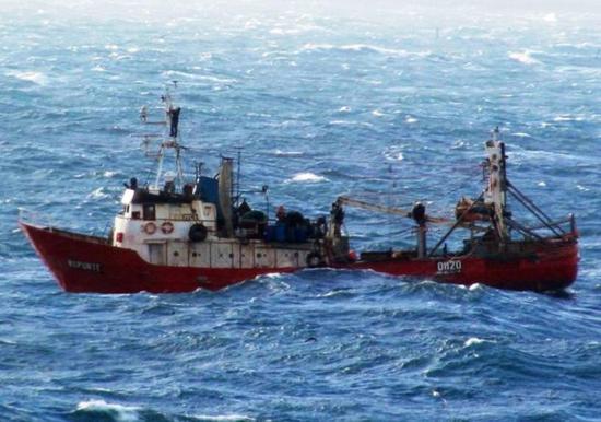 原標(biāo)題:阿根廷一艘漁船因惡劣天氣沉沒
