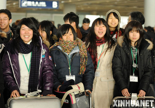 12月18日,來自日本大阪的高中生走出北京首都國際機場。 當日,作為“中日青少年友好交流年”框架下日方派遣的最后一個大型訪華團組,第2批日本青少年友好使者代表團一行1000人陸續抵達北京。除北京外,代表團將分為七個分團,分別赴浙江、遼寧、山東、廣東、陜西、江西、天津等地參觀訪問,與中國青少年廣泛交流,深入了解中國各地的情況,并出席中日雙方在京聯合舉辦的“交流年”中方閉幕式活動。 新華社記者 金良快攝