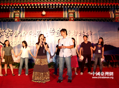 中國臺灣網7月20日北京消息 “……我們的心從沒有海峽的界限,在同一天空有著相同的語言,期待著我們相聚在海的那一邊……我們手拉手銘刻諾言,擁抱的日子不再遙遠。”7月19日晚上,北京后海之畔,臺灣十大杰出青年基金會大學生交流團與大陸學子舉行聯歡會,海峽兩岸的青年學生在晚風中唱響了“自己人”譜寫的歌曲——《我們的心》。