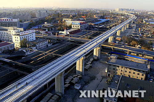 11月10日在天津拍攝的建設(shè)中的京津城際軌道。新華社發(fā)(謝津生 攝)