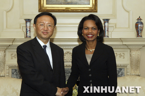 新華網華盛頓11月26日電(記者 嚴鋒)中國外交部長楊潔篪26日在美國首都華盛頓會見了美國國務卿賴斯。