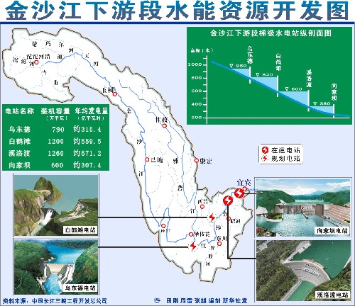 已于上月7日成功截流的中國第二大水電站溪洛渡電站,就位于四川雷波縣和云南永善縣境內金沙江干流上,電站總裝機容量為1260萬千瓦,壩高278米,防洪庫容46.5億立方米。金沙江下游水電梯級開發最下游的向家壩水電站設計裝機容量600萬千瓦,計劃2012年首批機組發電、2015年工程竣工,工程動態投資估算約180億元。