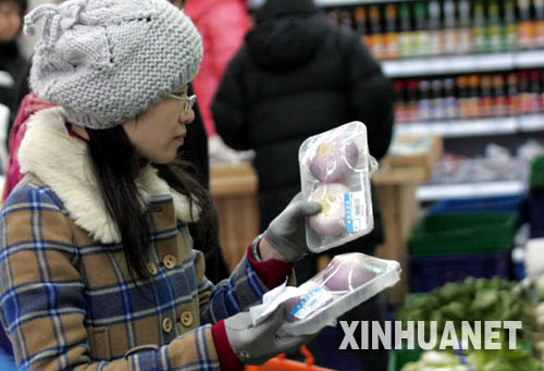 1月27日,顧客正在寧夏銀川一家超市選購蔬菜和水果。1月26日,寧夏臨時價格干預措施啟動,對影響較大的8家企業實行提價申報,對17家企業經營的商品實行調價備案,品種涉及面粉、大米、食用植物油、純牛奶、肉類、雞蛋等。不少市民反映,出臺臨時價格干預措施有利于穩定節日期間市場物價,遏制追風漲價,切實減輕百姓消費負擔。新華社記者 李紫恒 攝