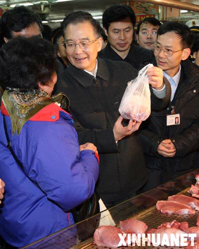 春節快到了,溫家寶十分關心市場供應和價格問題。廣州東川新街市農貿市場經營各類肉菜品種近萬個,這里人流如潮,一派繁忙。來到店主梁少芬的檔口,總理關切地問,咸水鴨一斤多少錢,在這里經營是否要交管理費。在店主周霞的檔口,出售廣州番禺區的無公害蔬菜,總理仔細查看產地。從菜價,到肉價,總理問得很細致。一位買菜的老太太告訴總理,今年她的退休工資又增加了160元,生活更有保障。溫家寶聽后高興地笑了。冬雨中,總理與大家揮手告別。
