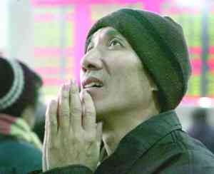 連日來,我國一些地區遭遇了嚴重的雨雪災害,但股市交易基本正常。圖為1月31日,在武漢一證券公司營業廳,一股民專注地盯著大盤。本報傳真圖