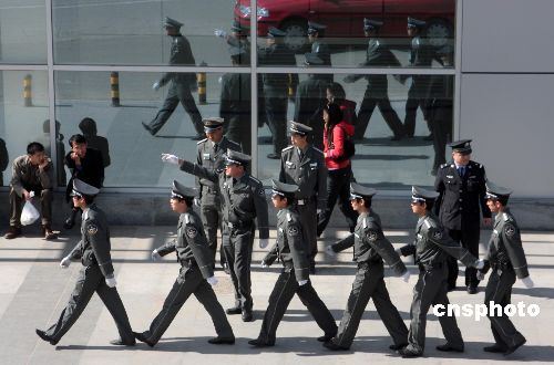 資料圖:2007年11月29日,來自全國保安工作座談會(huì)的消息,目前中國有保安服務(wù)企業(yè)2500多家,保安從業(yè)人員達(dá)300萬人。 中新社發(fā) 吳芒子 攝