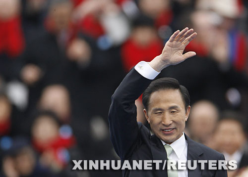 25日上午,韓國新總統(tǒng)李明博在韓國國會廣場舉行就職儀式,在國內(nèi)外5萬名貴賓前宣誓,正式成為韓國第十七任總統(tǒng)。