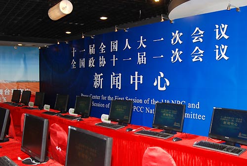 昨日(26日),設(shè)在北京梅地亞中心的兩會新聞中心已布置就緒,當(dāng)日正式啟用,開始接待中外各媒體記者辦理有關(guān)事宜。玉龍 攝