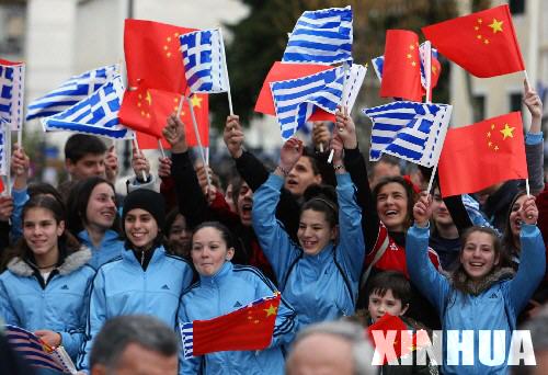 3月25日,希臘約阿尼納市的當地群眾迎接圣火的到來。當日,北京奧運會圣火繼續在希臘境內傳遞。 新華社記者畢明明攝
