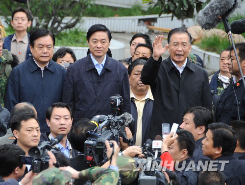 5月14日上午,溫家寶總理來到地震重災區北川縣。新華社記者陳燮攝